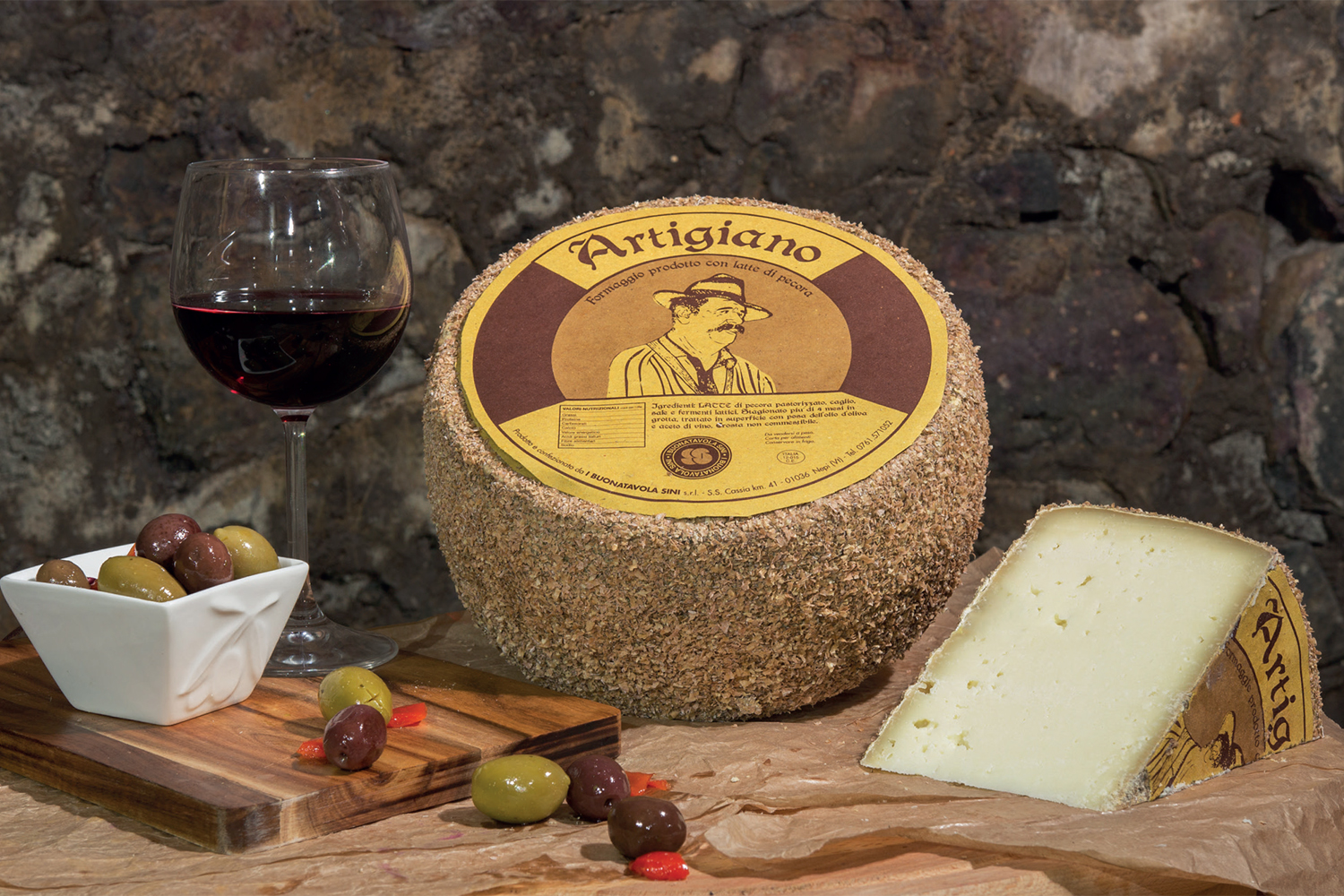 STAGIONATURA: 3/4 mesi in cantina, trattato in superficie con posatura dell’olio d’oliva (morchia) e aceto di vino e ricoperto di semola di grano